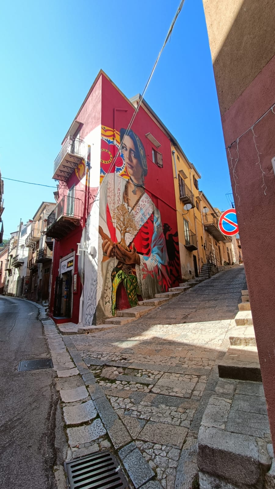 Eingebettet in das Grün der Palermo-Berge überrascht Piana degli Albanesi nicht nur mit seiner Arbëreshe-Geschichte und der Schönheit seiner traditionellen Trachten, sondern auch mit einer neuen Form des urbanen Geschichtenerzählens: Wandmalereien. Beim Spazieren (oder besser gesagt: Radeln) durch die Straßen des Dorfes begegnet man antiken Gesichtern, modernen Symbolen und schwebenden Kreaturen, die von Identität, Widerstand und Schönheit sprechen.