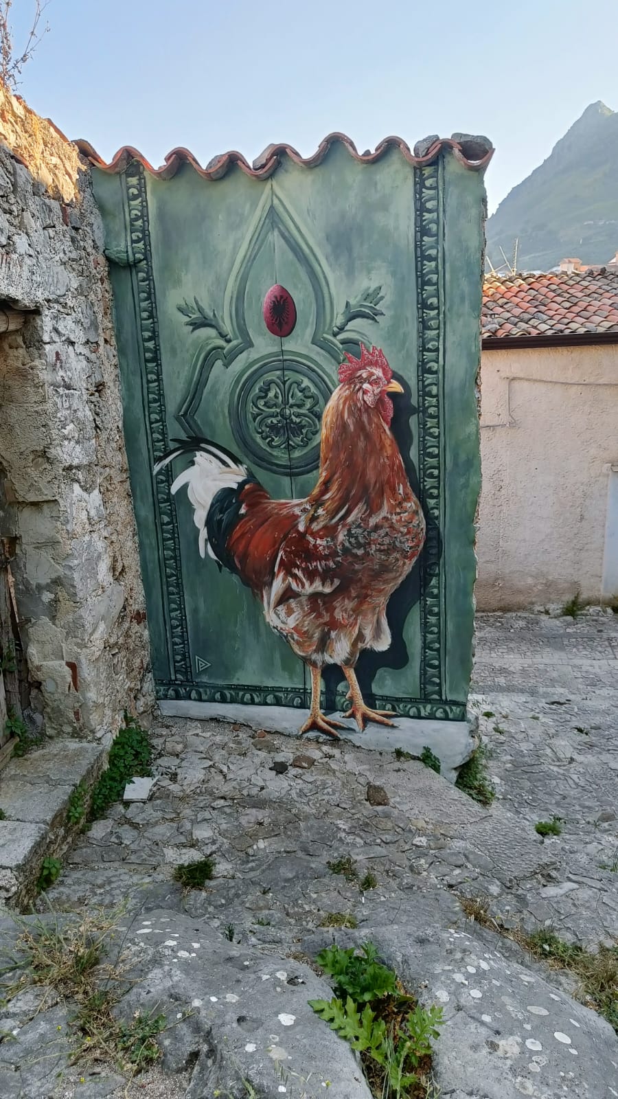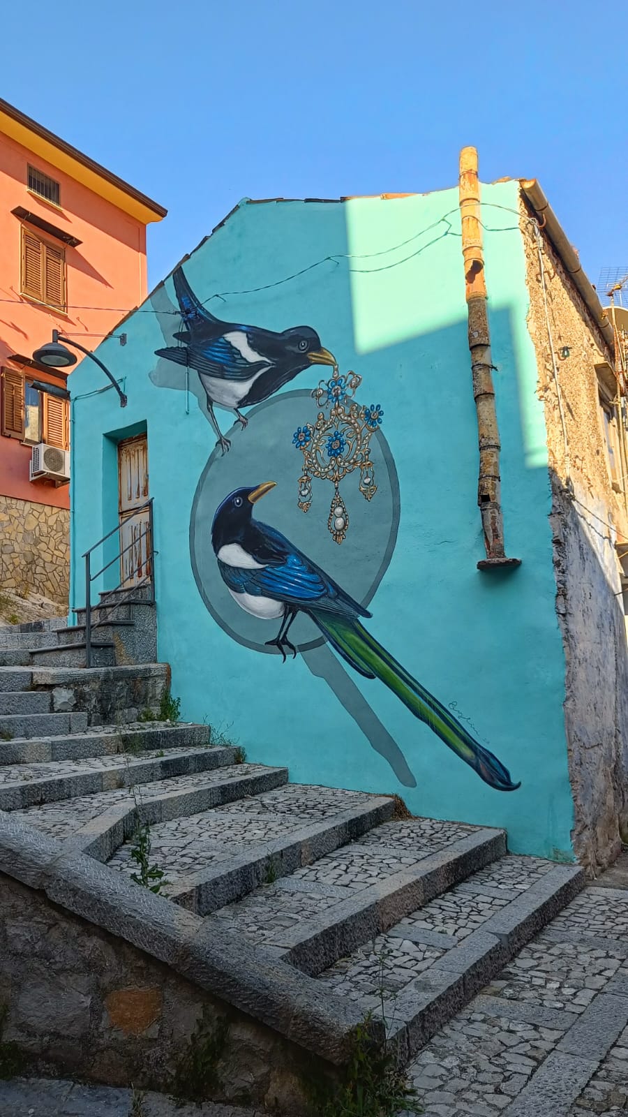 Die Wandmalereien zeigen Arbëreshe-Kultur, byzantinische Spiritualität, Bauernkampf und Freiheit, ausgedrückt durch symbolische Tiere und poetische Figuren. Jede Wand wird zu einer visuellen Stimme der Gemeinschaft.
