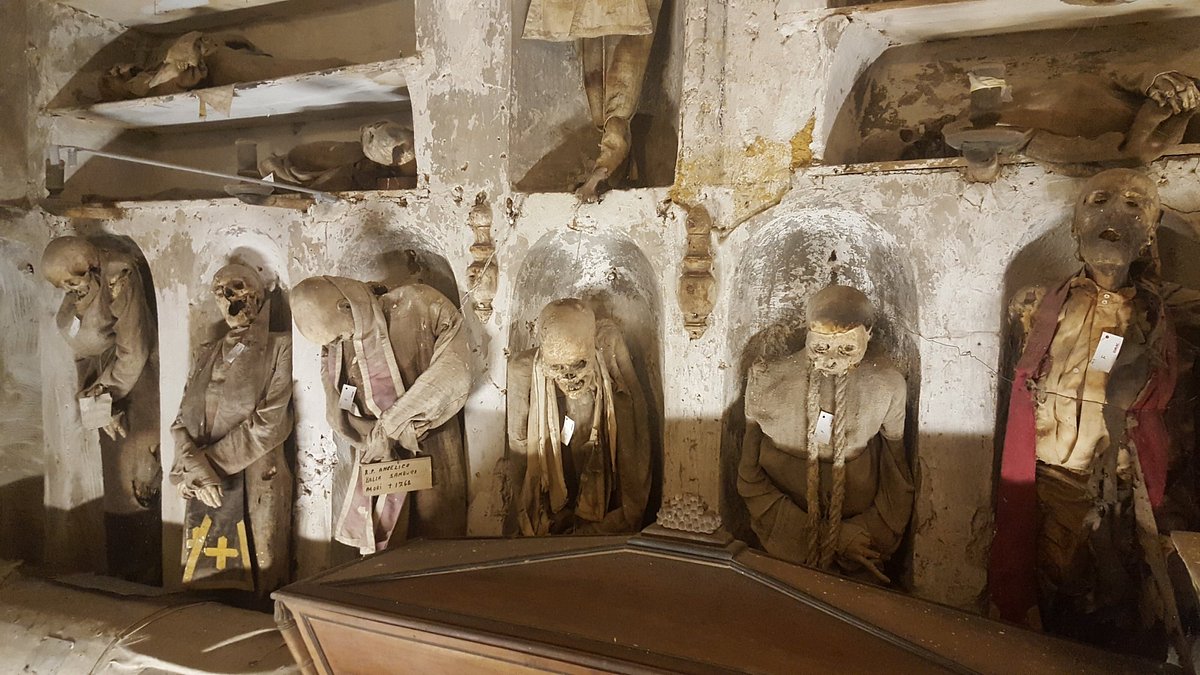 Il nostro tour in bici si propone di fare conoscere uno dei siti più iconici e misteriosi di Palermo, dove fede e racconto si mescolano in un luogo unico. Si tratterà della storia delle Catacombe, delle tecniche di imbalsamazione dei corpi da parte dei frati, delle principali figure presenti nella cripta e del macabro legame della gente a questa veglia eterna.