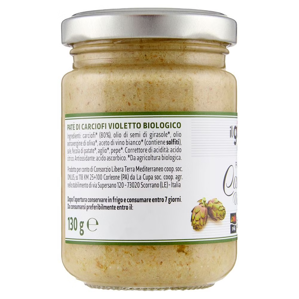 Il Paté di Carciofi Violetto Biologico Libera Terra ha una consistenza rustica e avvolgente che ne esalta il sapore caratteristico di questo straordinario ortaggio.